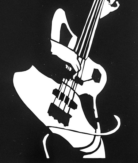 Along with the papercut of Mike Wilton entitled ‘Head Lamp’, ‘Bass Lamp’ is one of the most collectible designs in our portfolio. Anyone interested in ‘Rhythm Lamp’, the original of Matt Bennie, the bands’ awesome drummer, alas that was sold the first day it was displayed. (And this was before the band had gone on to tour with The Who or become the backing band for Mark Morris of the Bluetones’ fame.)