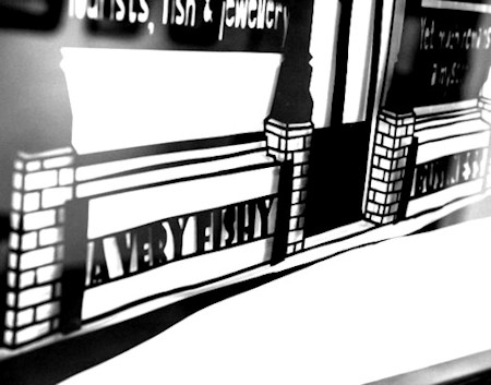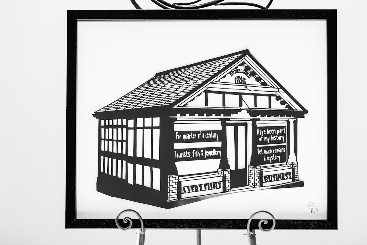 ‘Fishy Business’ draws its inspiration from one of most distinctive yet mysterious buildings in Tunbridge Wells. Most recently the old tourist information centre, it has seen many uses in the past, most notably as the old fishmarket. The connection with the sea has been re-established in its latest incarnation, an upmarket seafood brasserie serving oysters and champagne.
