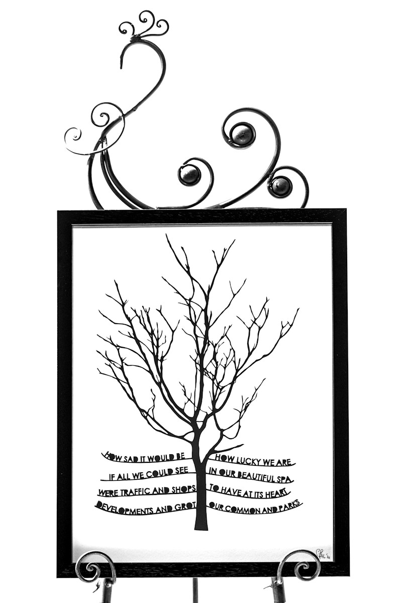 The only papercut original in our ‘Slice Of Life 2014’ exhibition not to feature a building or person, ‘Uncommon Loveliness’ is in many ways unique. It features a real tree that caught our eye growing in one of Tunbridge Wells’ best loved parks, the wonderful Calverley Gardens.
